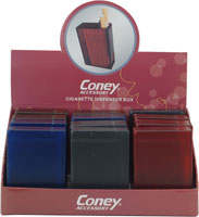 CONEY brand cigarette dispenser box, 4x trans. ass. in 12pc. CONEY ACCESSORY display, 240 pc master carton